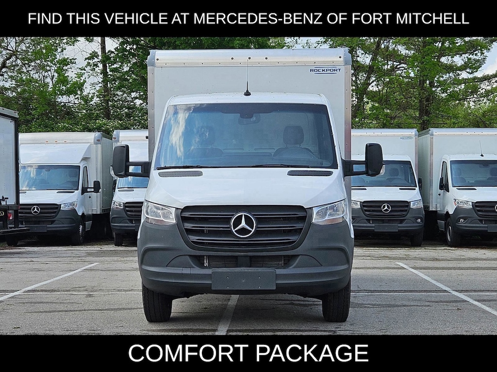 This 2024 Mercedes-Benz Sprinter 3500 comes with following features: 4-Wheel Disc Brakes, 5 Speakers, ABS brakes, Air Conditioning, AM/FM radio, Auxiliary Fuel Sending Unit w/Fuel Tap, Axle Ratio: 4.727, Bodyside moldings, Brake assist, Driver door bin, Driver's Seat Mounted Armrest, Dual front impact airbags, Dual front side impact airbags, Dual rear wheels, Electronic Stability Control, Emergency communication system: eCall Emergency System, Front anti-roll bar, Front Bucket Seats, Front wheel independent suspension, Fully automatic headlights, Heated door mirrors, Heated Driver Seat, Heated front seats, Illuminated entry, Maturin Fabric Upholstery, Occupant sensing airbag, Outside temperature display, Overhead airbag, Overhead console, Passenger door bin, Passenger seat mounted armrest, Power door mirrors, Power steering, Power windows, Radio: Standard, Rear anti-roll bar, Remote keyless entry, Speed control, Standard Driver Seat, Standard Front Passenger Seat, Steering wheel mounted audio controls, Tachometer, Tilt steering wheel, Traction control, and Wheels: 5.5J x 16 Steel.