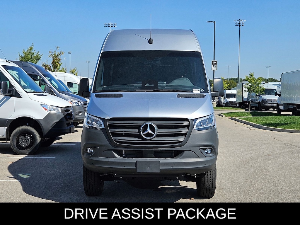 This 2025 Mercedes-Benz Sprinter 2500 comes with following features: All Wheel Drive Package, 16" x 6.5J Steel Wheels, 3.923 Axle Ratio, 4-Wheel Disc Brakes, 5 Speakers, ABS brakes, Air Conditioning, AM/FM radio, Armrest for Driver's Seat, Armrest for Front Passenger's Seat, Bodyside moldings, Brake assist, Co-Driver Thorax-Pelvis Sidebag, Driver door bin, Driver's Seat Mounted Armrest, Driver's Seat Occupancy Sensor, Dual front impact airbags, Dual front side impact airbags, Electronic Stability Control, Emergency communication system, Exterior Parking Camera Rear, Front anti-roll bar, Front Bucket Seats, Front Passenger Airbag, Front wheel independent suspension, Fully automatic headlights, Heated door mirrors, Heated Driver's Seat, Heated front seats, Illuminated entry, Low tire pressure warning, Maturin Fabric Upholstery, No Factory Installed Flooring, Outside temperature display, Overhead airbag, Overhead console, Passenger door bin, Passenger seat mounted armrest, Power door mirrors, Power steering, Power windows, Radio: Standard, Rain sensing wipers, Remote keyless entry, Speed control, Speed-sensing steering, Standard Driver Seat, Standard Front Passenger Seat, Steering wheel mounted audio controls, Tachometer, Tilt steering wheel, Traction control, and Variably intermittent wipers.