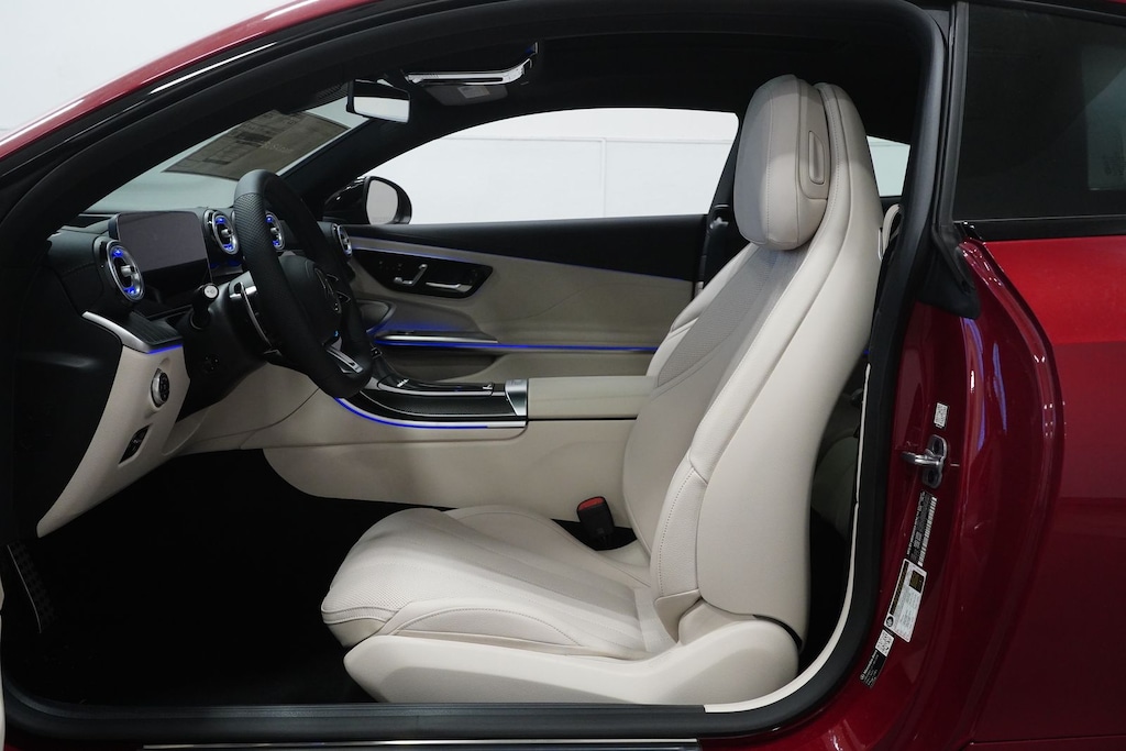 This 2026 Mercedes-Benz CLE comes with following features: 3.0L I6 Turbo, 11.9" Center Touchscreen Display, 15 Speakers, 4-Wheel Disc Brakes, ABS brakes, Adaptive suspension, Air Conditioning, Alloy wheels, AM/FM radio: SiriusXM w/360L, Apple CarPlay®/Android Auto®, Auto High-beam Headlights, Auto tilt-away steering wheel, Auto-dimming door mirrors, Auto-dimming Rear-View mirror, Automatic temperature control, Brake assist, Bumpers: body-color, Child-Seat-Sensing Airbag, Compass, Delay-off headlights, Driver door bin, Driver vanity mirror, Dual front impact airbags, Dual front side impact airbags, Electronic Stability Control, Emergency communication system: Mercedes-Benz Emergency Call Service, Exterior Parking Camera Rear, Four wheel independent suspension, Front anti-roll bar, Front Bucket Seats, Front Center Armrest, Front dual zone A/C, Front reading lights, Fully automatic headlights, Garage door transmitter: HomeLink, HD Radio, Head restraints memory, Heated door mirrors, Heated Front Seats, Heated front seats, Illuminated entry, Knee airbag, Leather steering wheel, Low tire pressure warning, MB Navigation, MB-Tex/Microfiber Upholstery w/Red Stitching, Memory seat, Navigation system: MBUX, Occupant sensing airbag, Outside temperature display, Overhead airbag, Overhead console, Panic alarm, Passenger door bin, Passenger vanity mirror, Piano Black Lacquer Center Console, Power adjustable front head restraints, Power door mirrors, Power driver seat, Power moonroof: Panorama, Power passenger seat, Power steering, Power windows, Radio data system, Radio: Burmester® Surround Sound System, Rain sensing wipers, Rear anti-roll bar, Rear fog lights, Rear window defroster, Remote keyless entry, Security system, SiriusXM Satellite Radio, Speed control, Speed-sensing steering, Split folding rear seat, Spoiler, Sport steering wheel, Steering wheel memory, Steering wheel mounted audio controls, Tachometer, Telescoping steering wheel, Tilt steering wheel, Traction control, Trip computer, Turn signal indicator mirrors, Variably intermittent wipers, Wheels: 19" AMG® Multi-Spoke w/Black Accents, Wireless Android Auto®, and Wireless Apple CarPlay®.