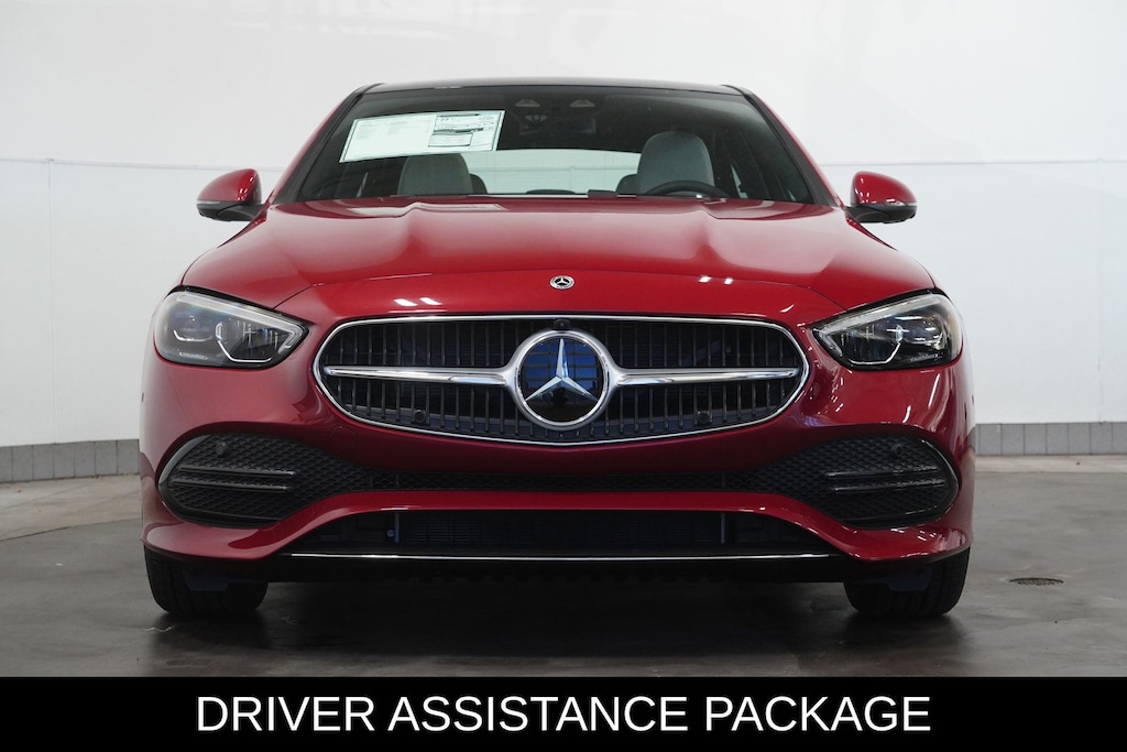 This 2026 Mercedes-Benz C-Class comes with following features: 4MATIC®, ABS brakes, Alloy wheels, Compass, Electronic Stability Control, Front Bucket Seats, Front Center Armrest, Front dual zone A/C, Heated door mirrors, Heated front seats, Illuminated entry, Low tire pressure warning, Power moonroof, Power passenger seat, Remote keyless entry, Split folding rear seat, Traction control, 11.9" Center Touchscreen Display, 4-Wheel Disc Brakes, 5 Speakers, Air Conditioning, AM/FM radio: SiriusXM, Anti-whiplash front head restraints, Apple CarPlay®/Android Auto®, Auto High-beam Headlights, Auto tilt-away steering wheel, Auto-dimming door mirrors, Auto-dimming Rear-View mirror, Automatic temperature control, Brake assist, Bumpers: body-color, Child-Seat-Sensing Airbag, Delay-off headlights, Driver door bin, Driver vanity mirror, Dual front impact airbags, Dual front side impact airbags, Emergency communication system: Mercedes-Benz Emergency Call Service, Exterior Parking Camera Rear, Four wheel independent suspension, Front anti-roll bar, Front reading lights, Fully automatic headlights, Garage door transmitter: HomeLink, Genuine wood dashboard insert, Head restraints memory, Knee airbag, Leather steering wheel, MB-Tex Upholstery, Memory seat, Occupant sensing airbag, Outside temperature display, Overhead airbag, Overhead console, Panic alarm, Passenger door bin, Passenger vanity mirror, Power adjustable front head restraints, Power door mirrors, Power driver seat, Power Heated Front Seats w/Memory, Power steering, Power windows, Premium audio system: MBUX, Radio data system, Radio: FrontBass 5-Speaker Audio System, Rain sensing wipers, Rear anti-roll bar, Rear fog lights, Rear reading lights, Rear seat center armrest, Rear window defroster, Security system, SiriusXM Satellite Radio, Speed control, Speed-sensing steering, Steering wheel memory, Steering wheel mounted audio controls, Tachometer, Telescoping steering wheel, Tilt steering wheel, Trip computer, Turn signal indicator mirrors, Variably intermittent wipers, Weather band radio, and Wheels: 7.5J x 18" Fr & 8.5J x 18" Rr 5-Spoke.