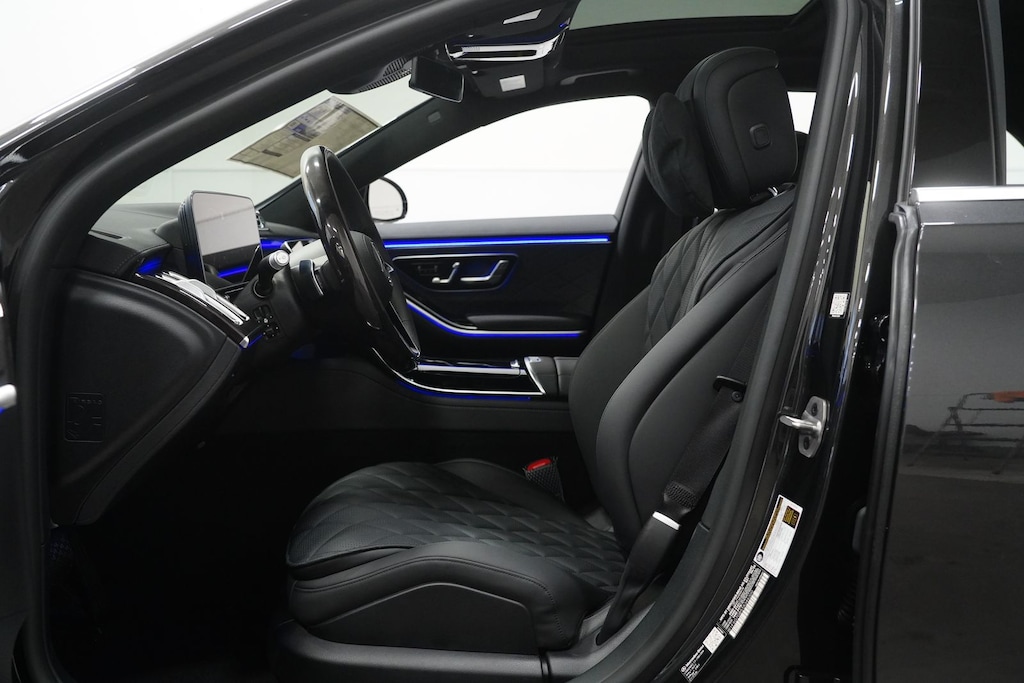 This 2026 Mercedes-Benz S-Class comes with following features: 4.0L V8, 4MATIC®, Black Leather, ABS brakes, Active Cruise Control, Alloy wheels, Compass, Electronic Stability Control, Front Bucket Seats, Front Center Armrest, Front dual zone A/C, Heated door mirrors, Heated front seats, Illuminated entry, Low tire pressure warning, Navigation System, Power passenger seat, Remote keyless entry, Traction control, Ventilated front seats, 15 Speakers, 4-Wheel Disc Brakes, Adaptive suspension, Air Conditioning, AM/FM radio: SiriusXM, Apple CarPlay®/Android Auto®, Audio memory, Auto High-beam Headlights, Auto tilt-away steering wheel, Auto-dimming door mirrors, Auto-dimming Rear-View mirror, Auto-leveling suspension, Automatic temperature control, Brake assist, Bumpers: body-color, Burmester® 3D Surround Sound System, Child-Seat-Sensing Airbag, Delay-off headlights, Driver door bin, Driver vanity mirror, Dual front impact airbags, Dual front side impact airbags, Emergency communication system: eCall Emergency System, Exterior Parking Camera Rear, Four wheel independent suspension, Front anti-roll bar, Front reading lights, Garage door transmitter: HomeLink, Genuine wood dashboard insert, Genuine wood door panel insert, Head restraints memory, Heated Steering Wheel, Heated steering wheel, HVAC memory, Knee airbag, Leather steering wheel, MANUFAKTUR Leather Upholstery, Memory seat, Occupant sensing airbag, Outside temperature display, Overhead airbag, Overhead console, Panic alarm, Passenger door bin, Passenger vanity mirror, Power adjustable front head restraints, Power adjustable rear head restraints, Power door mirrors, Power driver seat, Power moonroof: Panorama, Power steering, Power windows, Powered Rapid-Heated & Ventilated Front Seats, Premium audio system: MBUX, Radio data system, Radio: MBUX w/Navigation, Rain sensing wipers, Rear anti-roll bar, Rear fog lights, Rear reading lights, Rear seat center armrest, Rear side impact airbag, Rear Window Blind, Rear window defroster, Security system, Speed control, Speed-sensing steering, Speed-Sensitive Wipers, Steering wheel memory, Steering wheel mounted audio controls, Tachometer, Telescoping steering wheel, Tilt steering wheel, Trip computer, Turn signal indicator mirrors, Variably intermittent wipers, and Wheels: 19" 5-Twin Spoke.