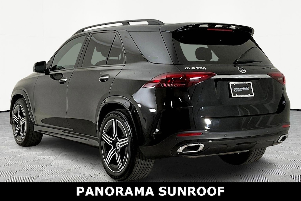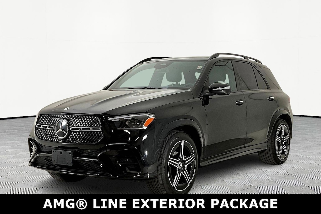 Obsidian Black Metallic 2025 Mercedes-Benz GLE 350 4MATIC® 9-Speed Automatic 2.0L I4 Turbocharged AMG® Line Body Styling, AMG® Line Exterior, Burmester® Surround Sound System w/Dolby Atmos, Chrome Roof Rails, Exclusive Trim, High-Gloss Black Elements, Night Package, Panorama Power Tilt/Sliding Sunroof, Perforated Brake Discs, Split-Folding Rear Seats, Wheels: 21" AMG® Multispoke.